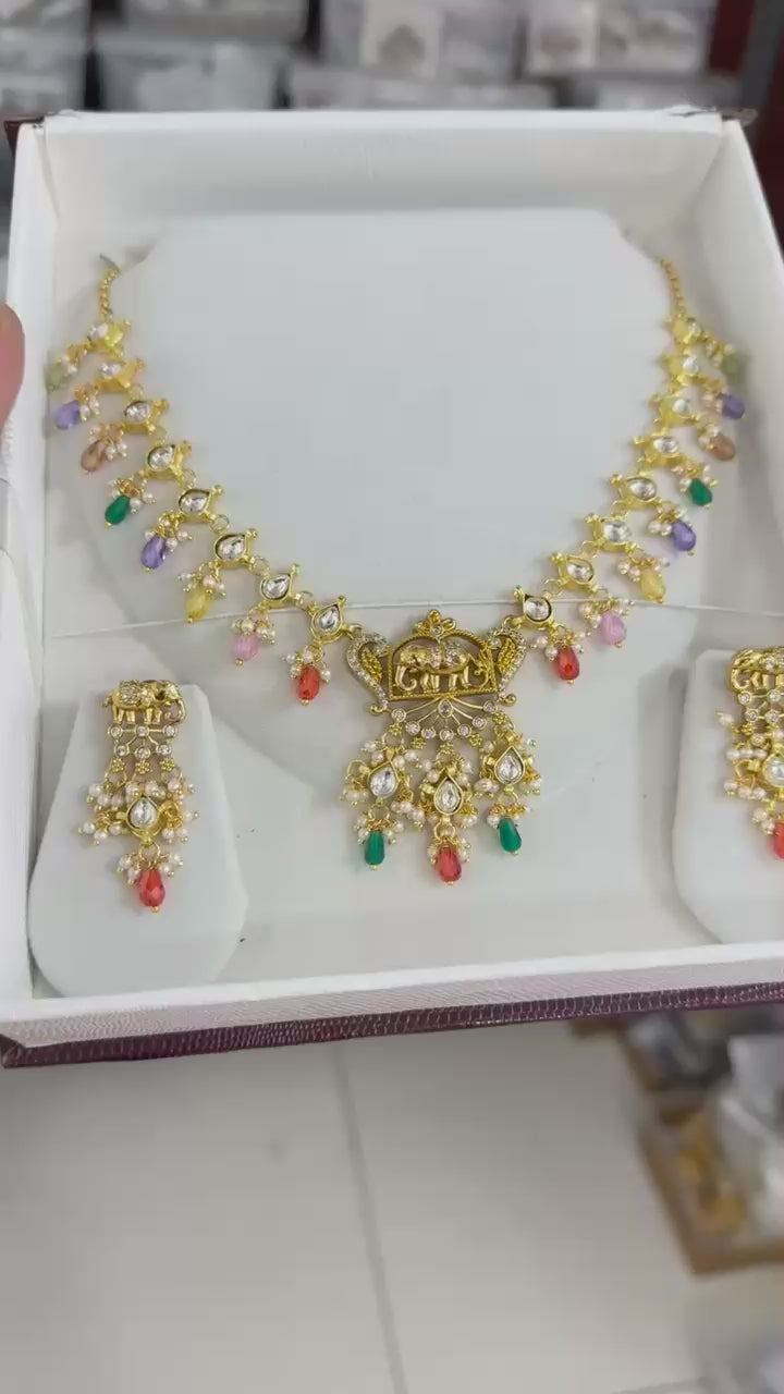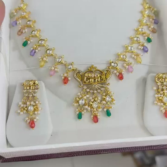 This sophisticated golden elephant necklace set offers a timeless addition to your jewelry collection. Crafted with exquisite attention to detail, this set showcases the beauty and strength of the majestic elephant while adding a touch of elegance to any outfit. Perfect for nature lovers or those seeking a unique statement piece.
